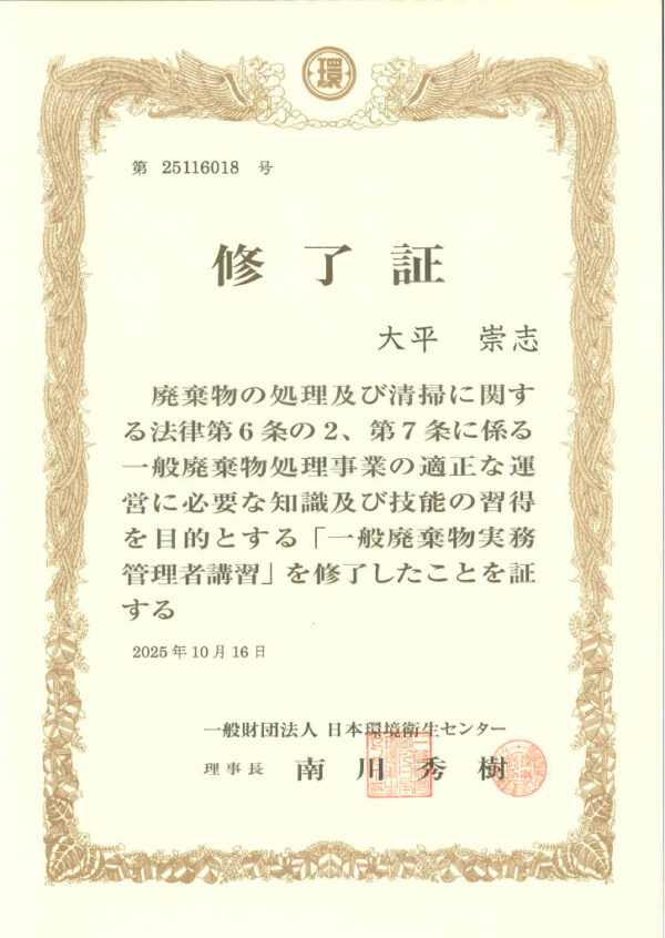 一般廃棄物実務管理者講習を受講いたしました。|株式会社クリーンハート